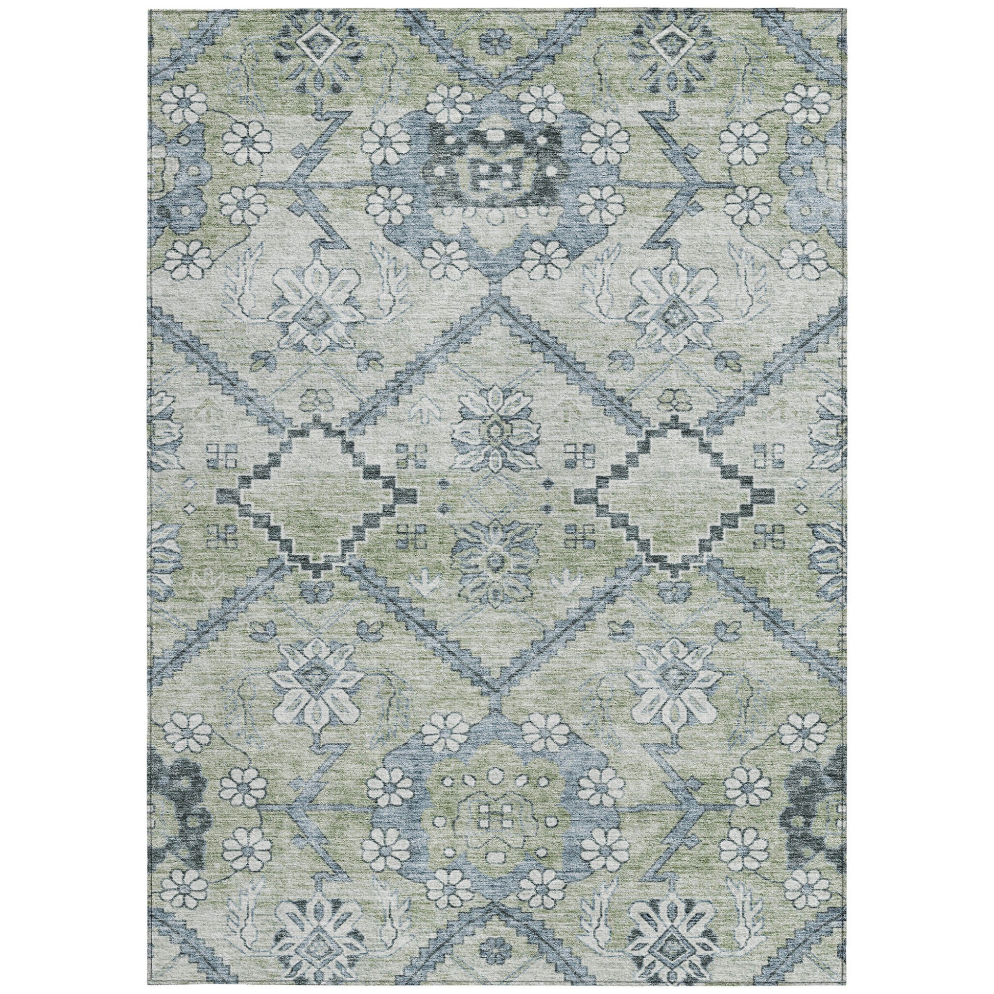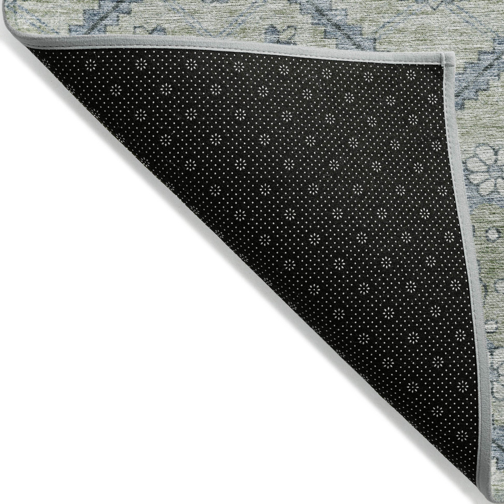 10' X 14' Artichoke Green Denim Blue And Silver Floral Washable Indoor Outdoor Area Rug