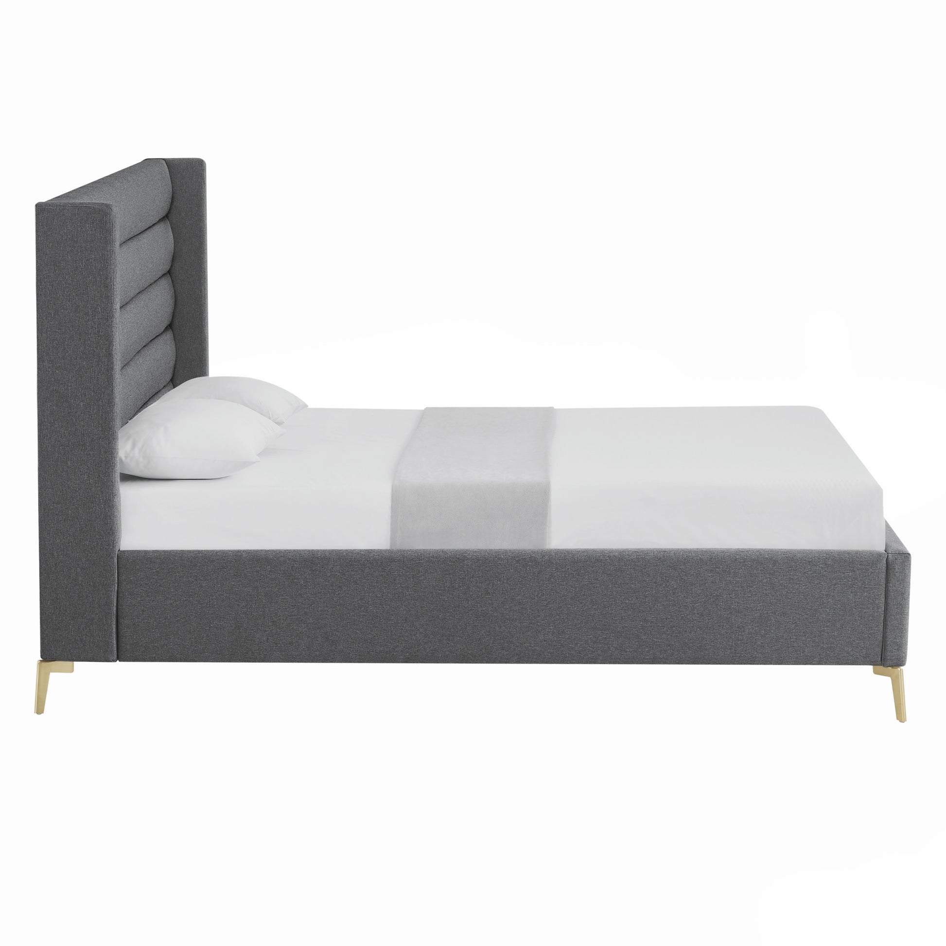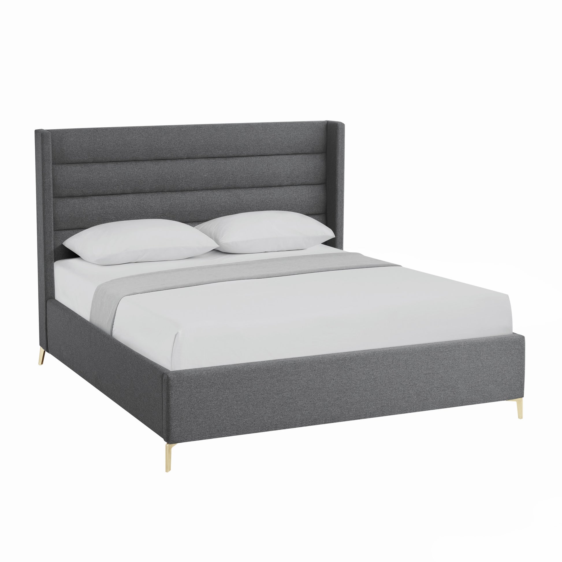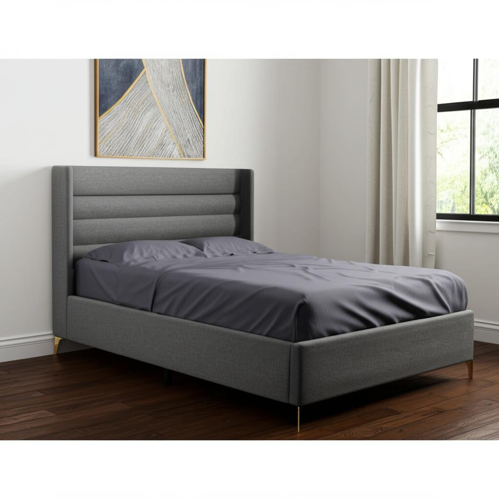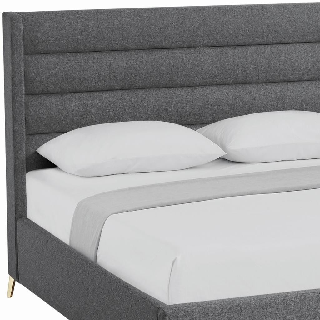The gray linen upholstered queen bed frame is the ultimate combination of comfort and style. This modern bed is fully upholstered to create an inviting, aesthetically pleasing, and comfortable look. Fully upholstered in a gray rugged linen, this bed brings a unique and designer perspective to your space. Quality craftsmanship in every facet of production ensures durability and long-lasting wear. This bed is the perfect way to make your bedroom comfortable and inviting. 54.00-inch h x 87.00-inch w x 65.60-inch d.