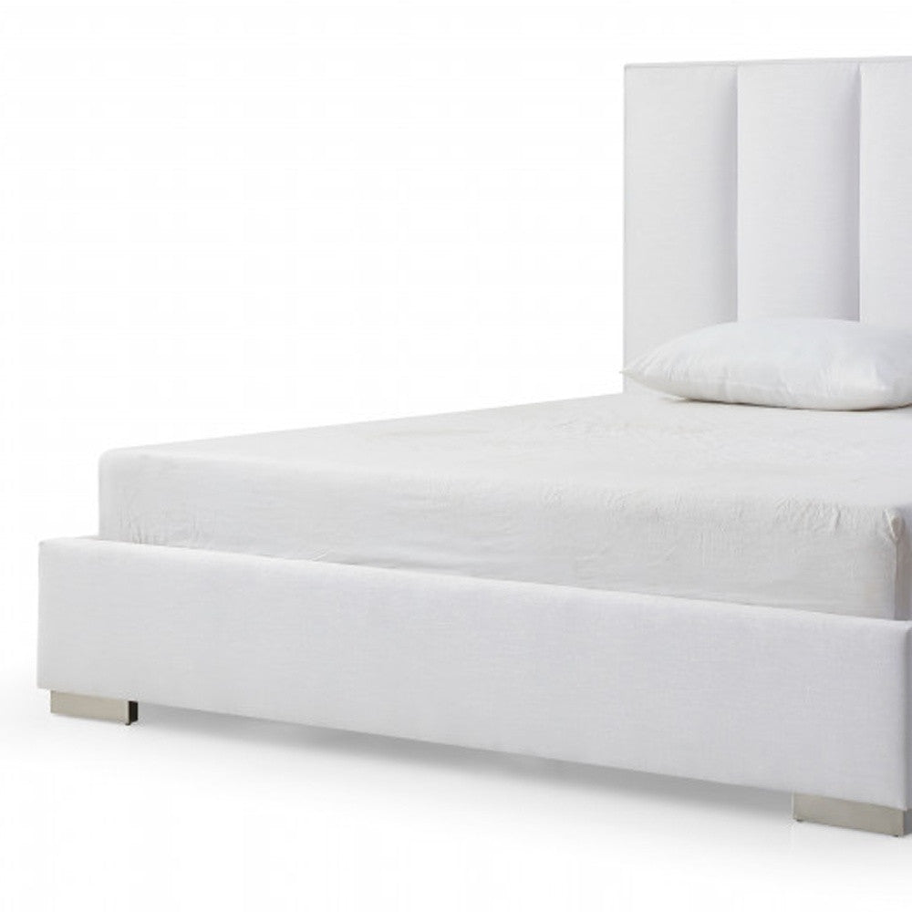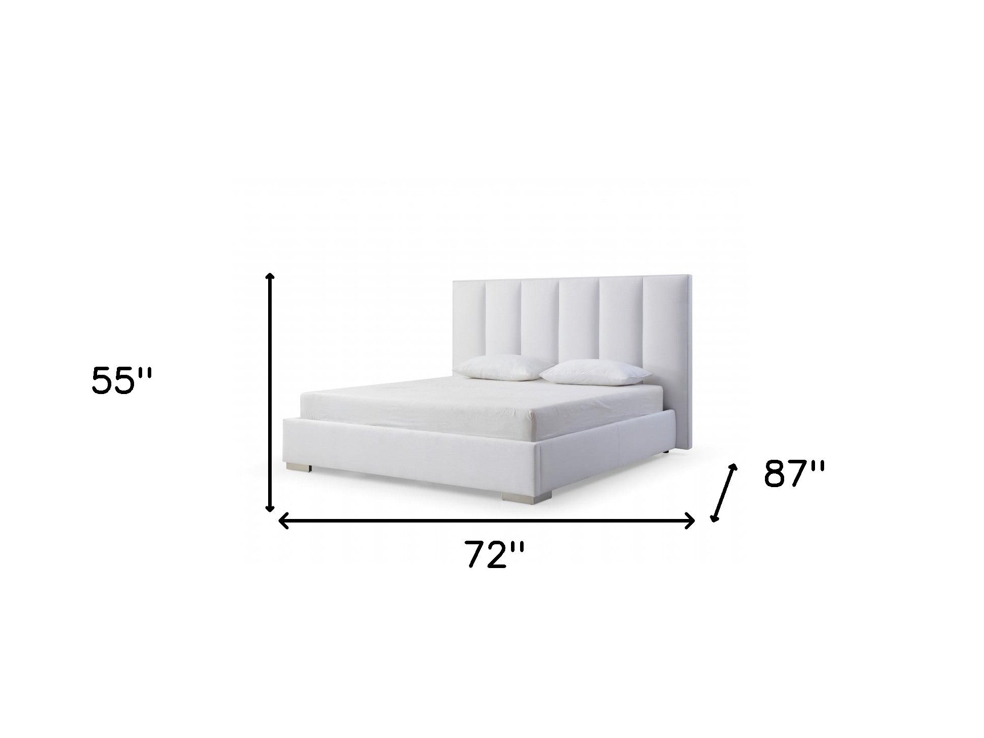 Update and anchor your room in style with the fabulous white ribbed texture velvet upholstered queen bed frame. Fully upholstered in a white rugged velvet, this bed brings a unique and designer perspective to your space. Quality craftsmanship in every facet of production ensures durability and long-lasting wear. This bed will help to create a peaceful environment that will provide restful slumber for years to come. Features high quality design that adds a contemporary vibe to your space. Contemporary styling gives this bed a clean and fresh style. 55-inch h x 72-inch w x 87-inch d.
